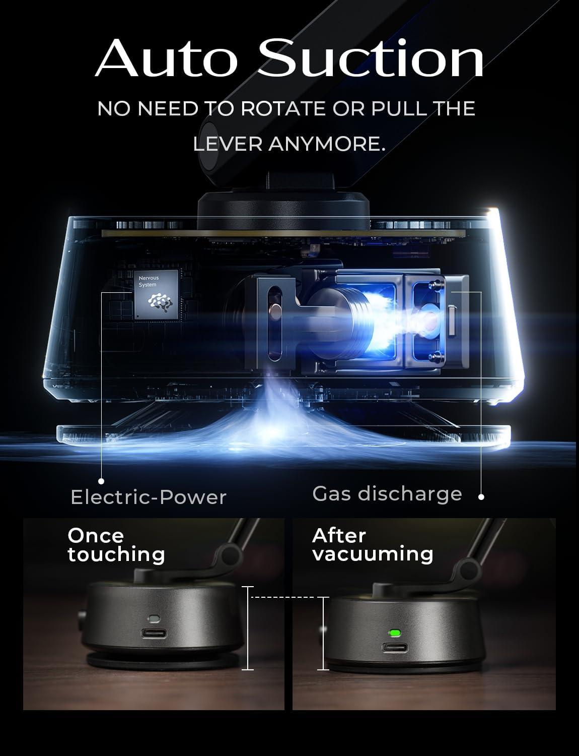 LISEN SuctionPro Phone Holder for Car【Auto Vacuum】Electric Vacuum Magnetic Phone Mount, Suction Cup Phone Mount 360° Adjustable Car Accessories Magsafe Car Mount for iPhone 17 Pro Max Air 16 15 14 13(Black)