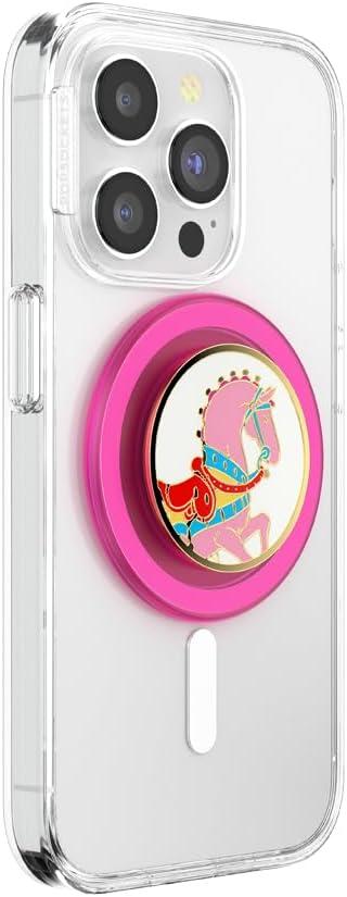 PopSockets Phone Grip for MagSafe with Kickstand, Magnetic Stand, Swappable Top, Secure Hold for iPhone MagSafe Cases, Phone & Tablet Grip – Aluminum Topo(Carousel Pony)
