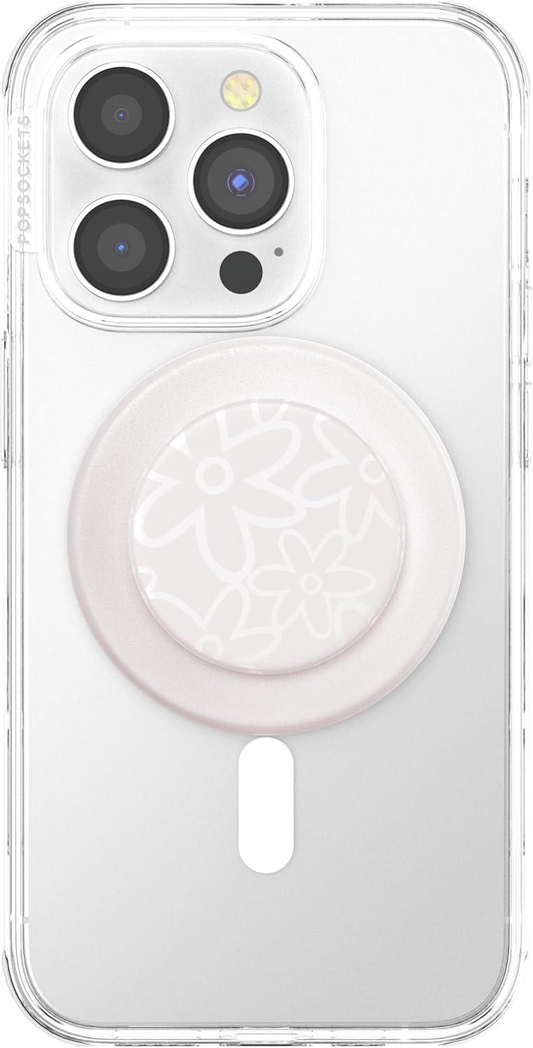 PopSockets Phone Grip for MagSafe with Kickstand, Magnetic Stand, Swappable Top, Secure Hold for iPhone MagSafe Cases, Phone & Tablet Grip – Aluminum Topo(Doodle Daisy)