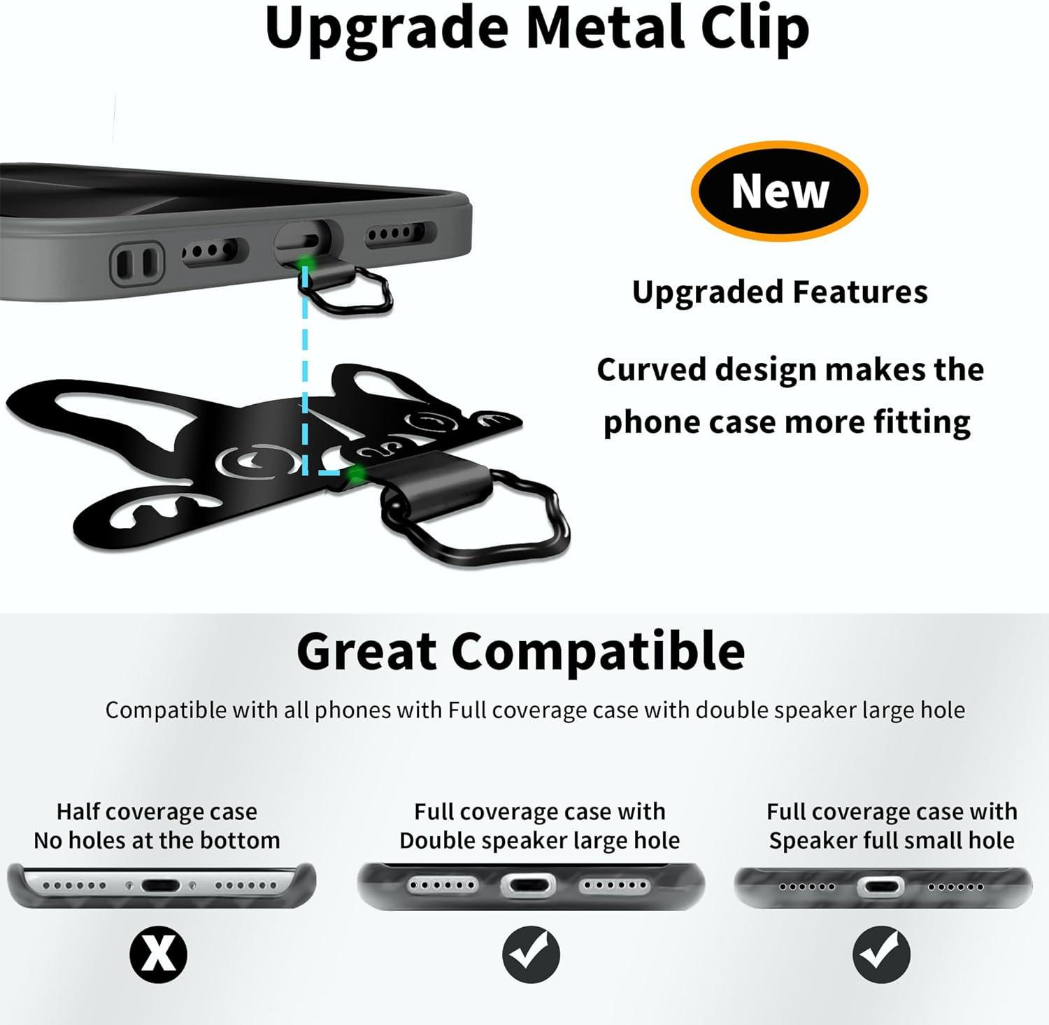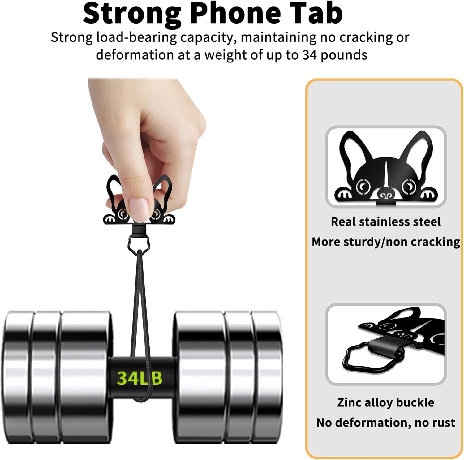 TACOMEGE Metal Phone Tether Tab Cute Dog for iPhone 16 15 14 13 12, Puppy Phone Lanyard Strap Patch Replacement for Smartphone Cases (Black)(Black)