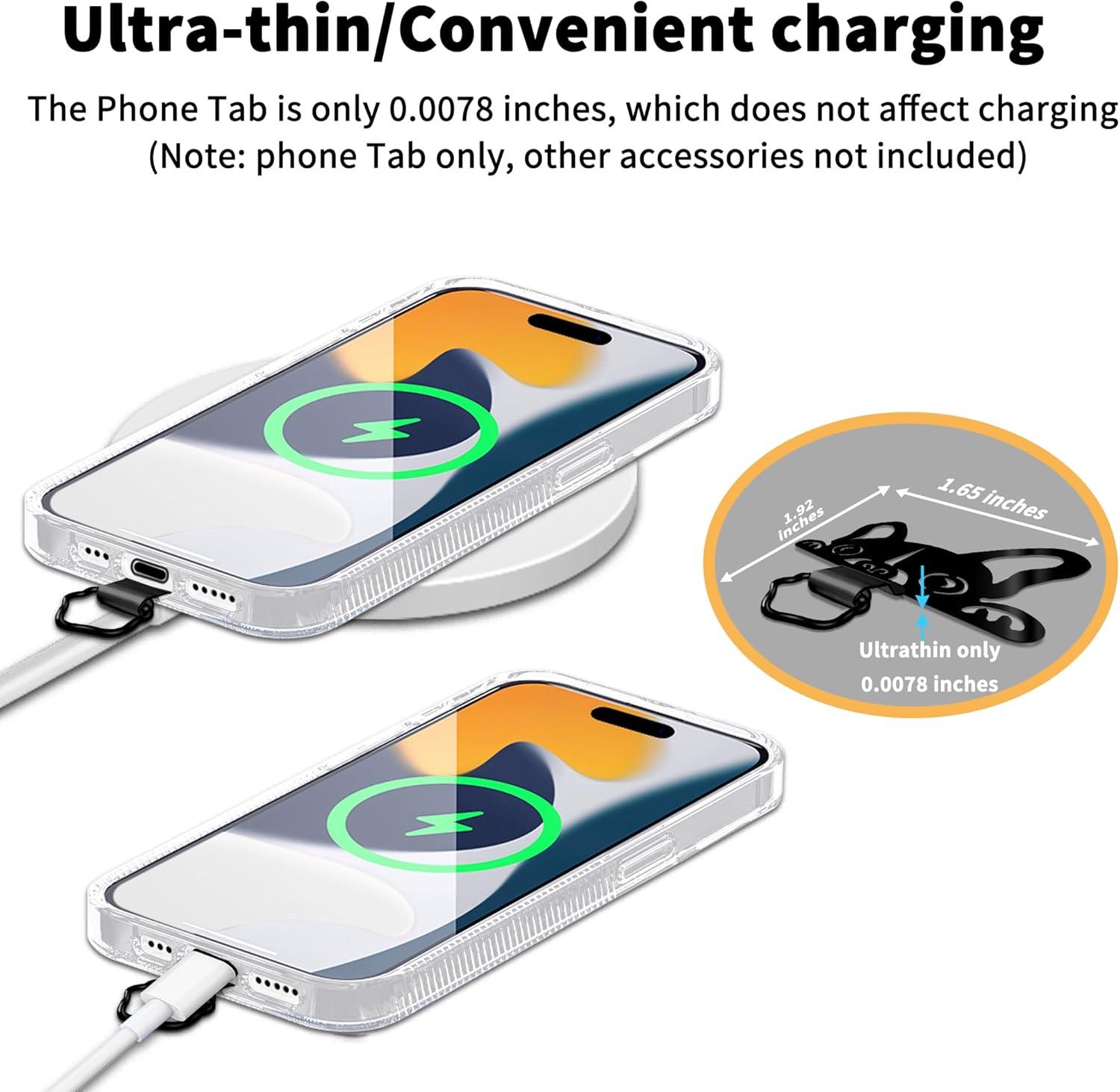 TACOMEGE 2pcs Transparent Phone Tether Tabs for Clear Phone Cases, Cell Phone Tether Replacement for iPhone Smartphone Case (T Type – Silver Buckle)(T Type – Silver Buckle)