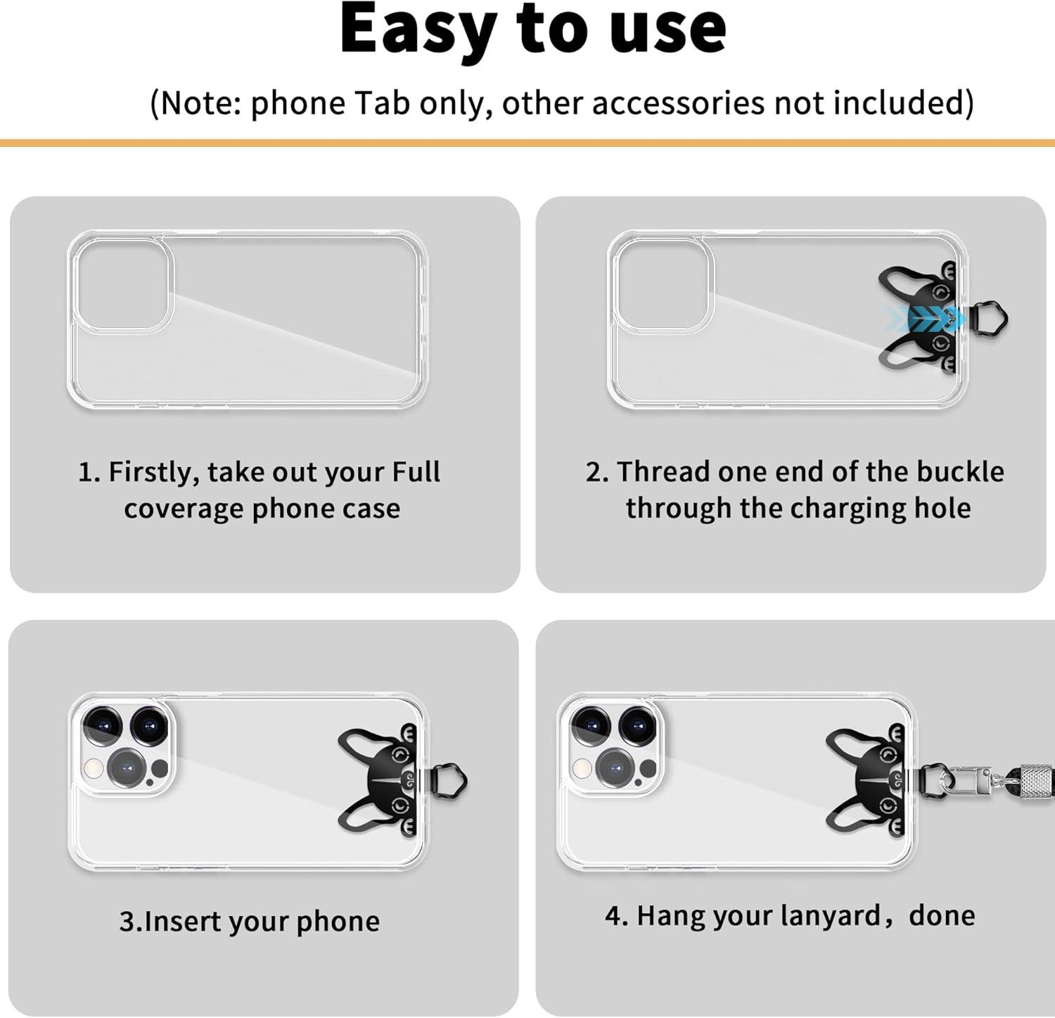 TACOMEGE 2pcs Transparent Phone Tether Tabs for Clear Phone Cases, Cell Phone Tether Replacement for iPhone Smartphone Case (T Type – Silver Buckle)(Square Type – Silver Buckle)
