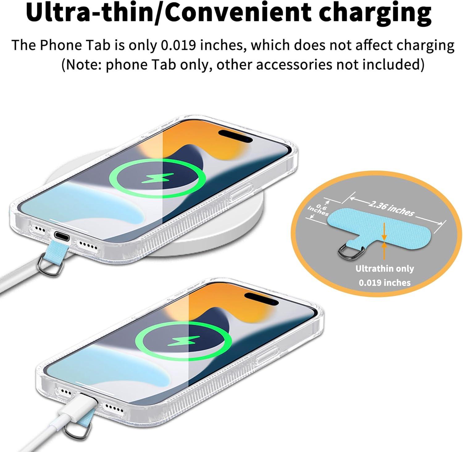 TACOMEGE Phone Tether Tab for iPhone, Cell Phone Lanyard Patch, Phone Strap Replacement Part for All Full Phone Cases (Pink)(Light Blue)