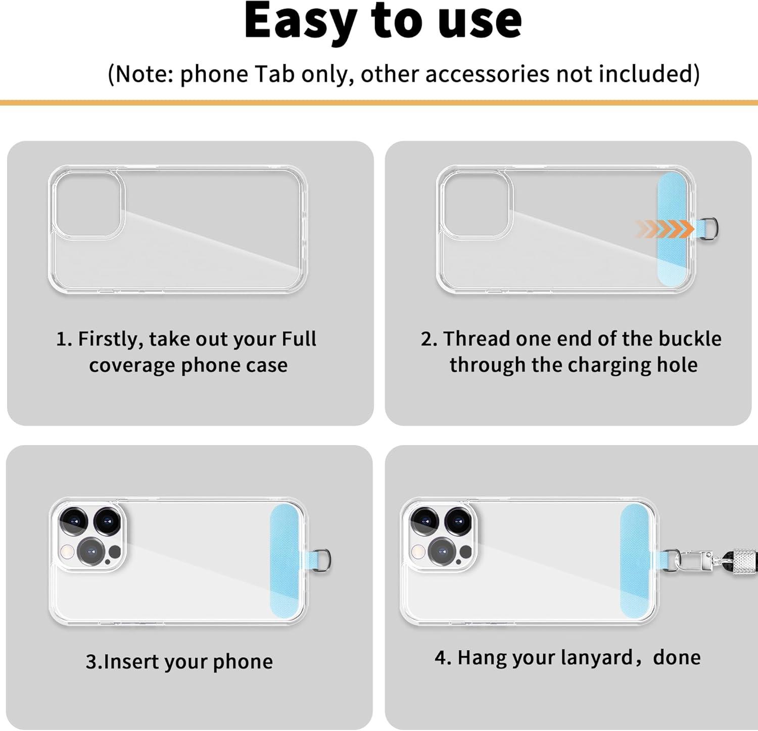 TACOMEGE Phone Tether Tab for iPhone, Cell Phone Lanyard Patch, Phone Strap Replacement Part for All Full Phone Cases (Pink)(Blue)