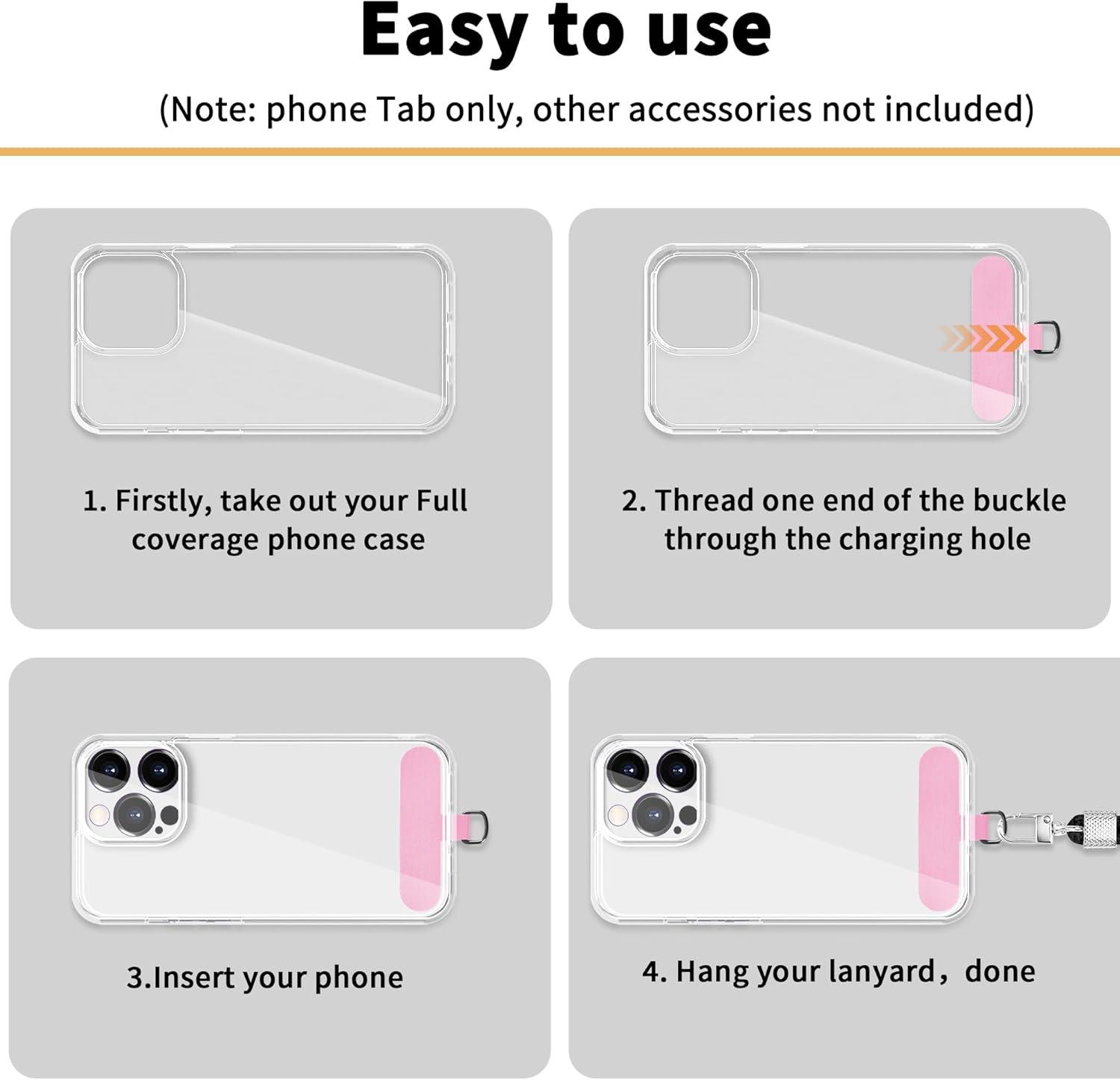 TACOMEGE Phone Tether Tab for iPhone, Cell Phone Lanyard Patch, Phone Strap Replacement Part for All Full Phone Cases (Pink)(Pink)