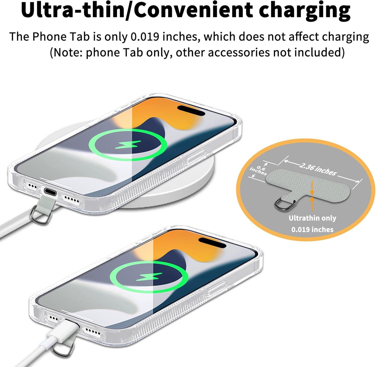 TACOMEGE Phone Tether Tab for iPhone, Cell Phone Lanyard Patch, Phone Strap Replacement Part for All Full Phone Cases(Light Grey)