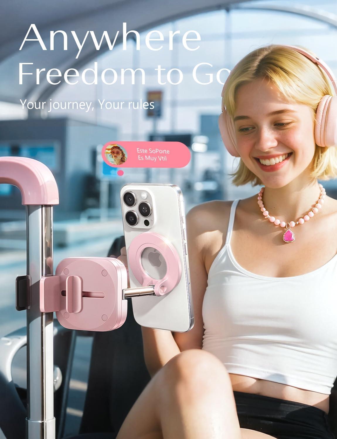 LISEN Travel Gifts 2025 Christmas for Gifts Airplane Gadgets Men Mini Travel Essentials Phone Holder Stocking Stuffers for Women MagSafe Accessories Cruise Essentials 2026 for Valentines Gift(Pink)