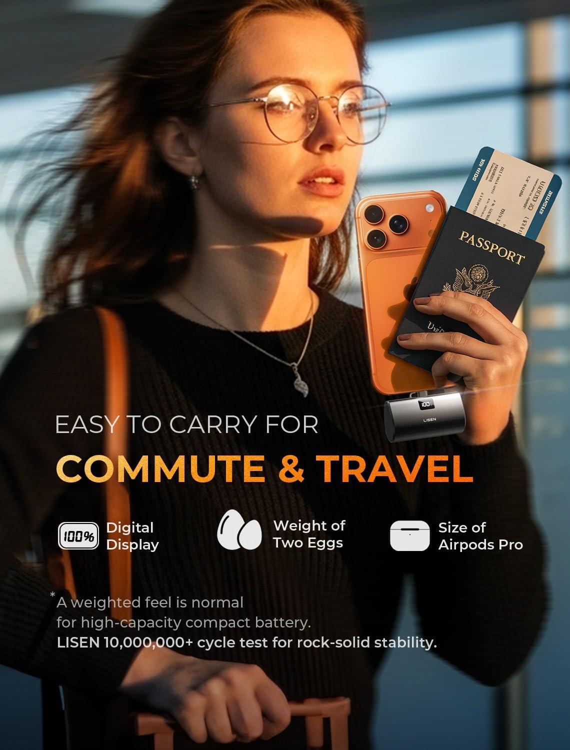 【HASSLE-FREE AFTER-SALES SERVICE】 Serving over 100,000+ owners of our small portable charger and other devices, LISEN prioritizes customer needs. We provide 3X the quality of customer service compared to others. This small portable charger comes with 24 months of worry-free care, 24-hour fast response, and lifetime technical support. If you encounter any issues, PLEASE contact us, and we'll ensure a satisfactory resolution.