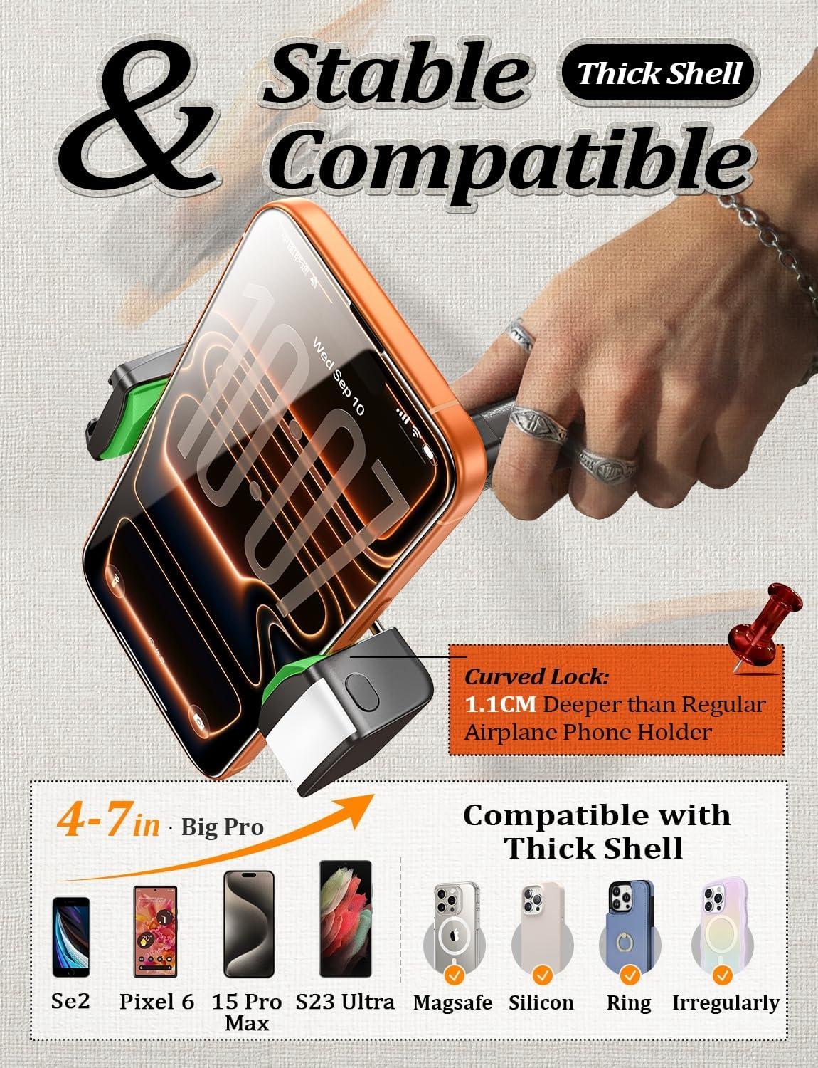 LISEN 2025 Upgraded Airplane Phone Holder: Reliable by day, with a built-in light for night. Whether you're reclining on a plane watching a movie or cozied up in bed streaming videos, it provides the perfect viewing angle and clear visibility in low light. The ultimate practical airplane gadgets.