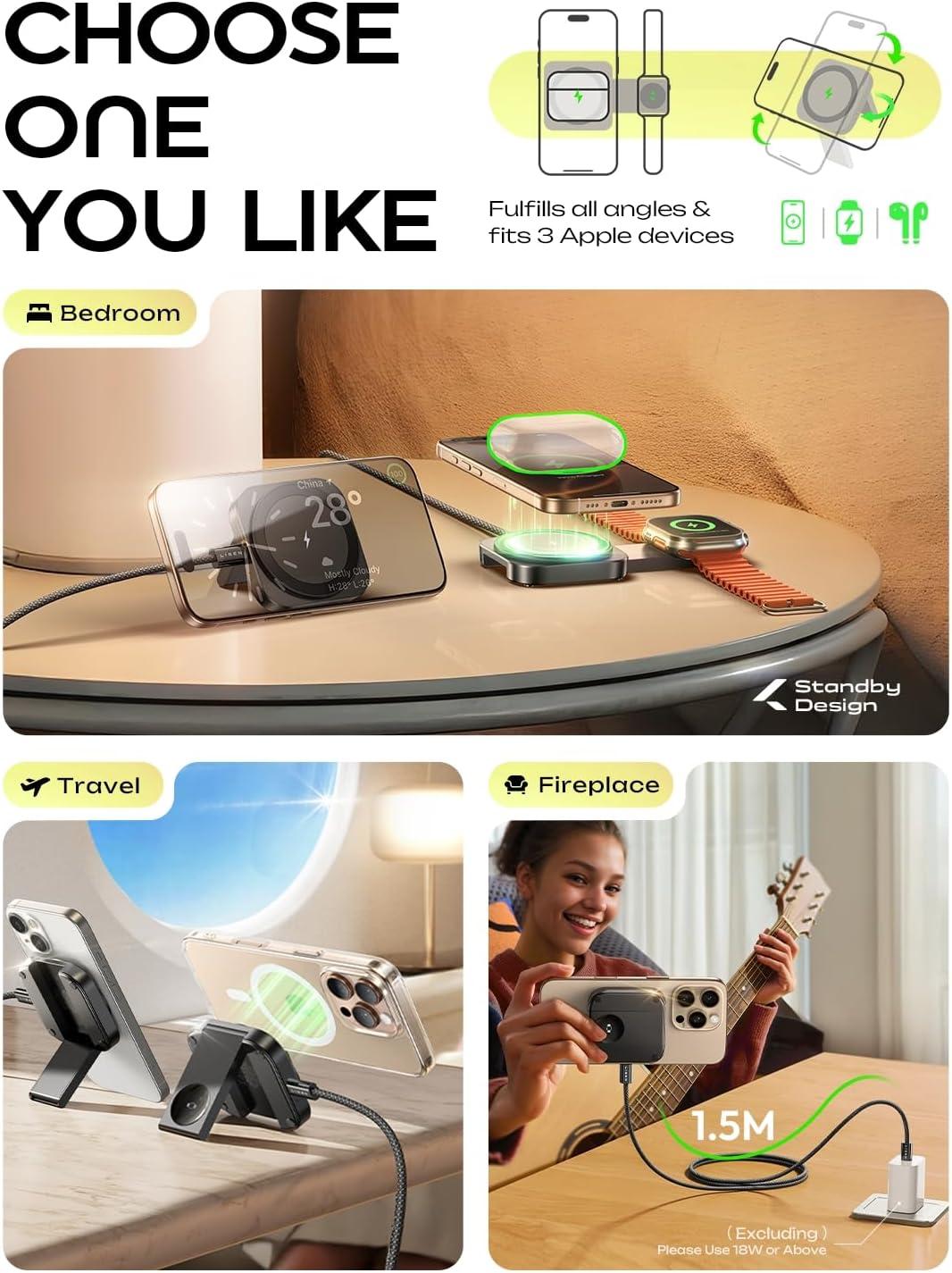 0.3″ Ultra Slim 2-in-1 Upgrade 3 Devices for Apple Magsafe charger Stand. – Introducing LISEN Minimalist Magic for Mag safe charger, the game-changing upgrade from cumbersome 3 in 1 charging station apple. This incredible upgrade is not just more convenient — it's a whole new level of ease slim. Imagine a slim design that's 100% more convenient than traditional 3-in-1 chargers. After all 90% of the time, you only need to recharge for two Apple devices at the same time!