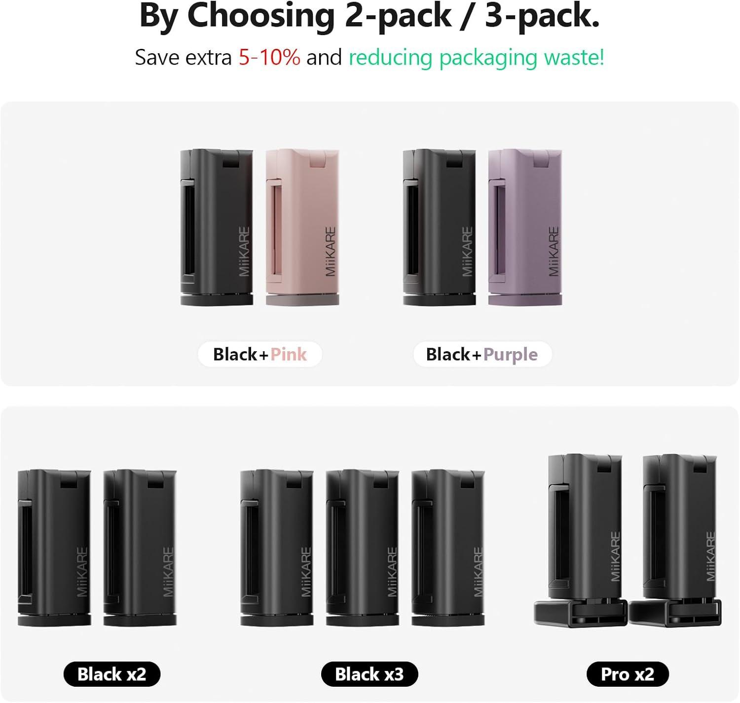 MiiKARE Travel Essentials Airplane Phone Holder, Universal Handsfree Phone Mount for Flying with 360 Degree Rotation, Travel Must Haves Phone Stand for Desk, Tray Table, Black&Black(Purple)