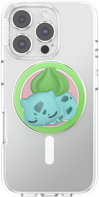 PopSockets Phone Grip for MagSafe with Kickstand, Magnetic Stand, Swappable Top, Secure Hold for iPhone MagSafe Cases, Phone & Tablet Grip, Cute PopSockets, Pokemon Fairy – Enamel Sakura Dreams(Sleepy Bulbassaur)