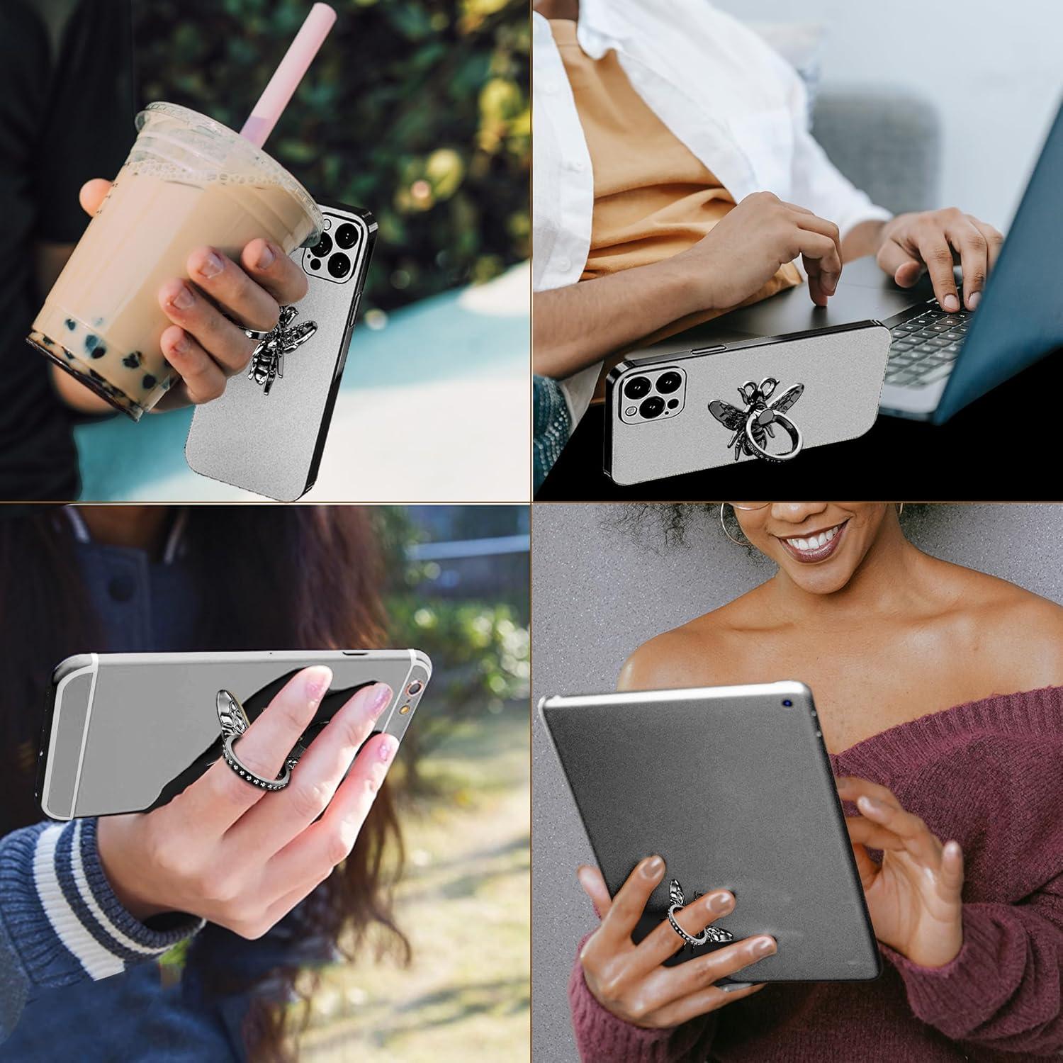 TACOMEGE Bee Cell Phone Ring Holder Gift for Girls Women, Crystal Finger Ring Kickstand Compatible with Smartphone, Tablet, E-Reader (Black)(Black)