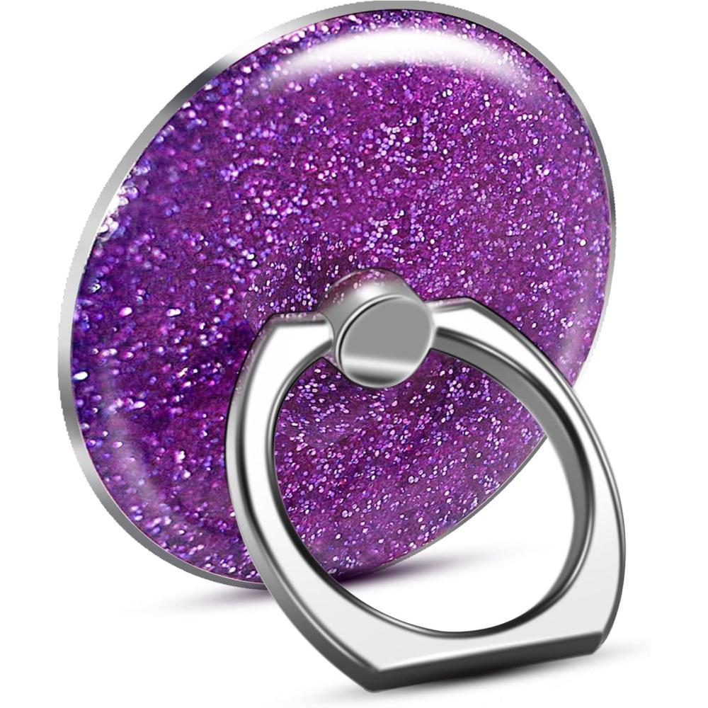 TACOMEGE Bling Glitter Phone Grip, Round Cell Phone Ring Holder Stand Purple for Women Girls, Compatible with Smartphone, Tablet, E-Reader, Etc (PU)(PU)
