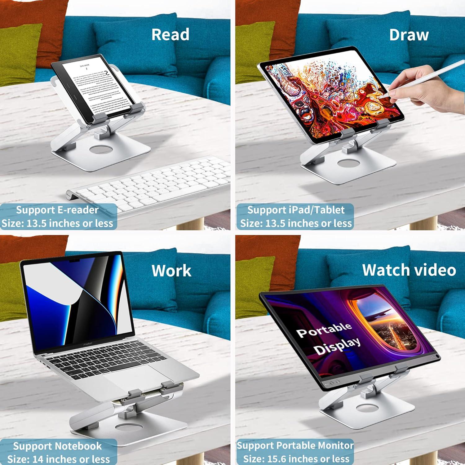 TACOMEGE Heavy Sturdy Aluminum Writing Drawing Stand Tablet Riser(with Cooling Fan) for iPad, Samsung Tab, Surface Pro, Foldable Portable Monitor