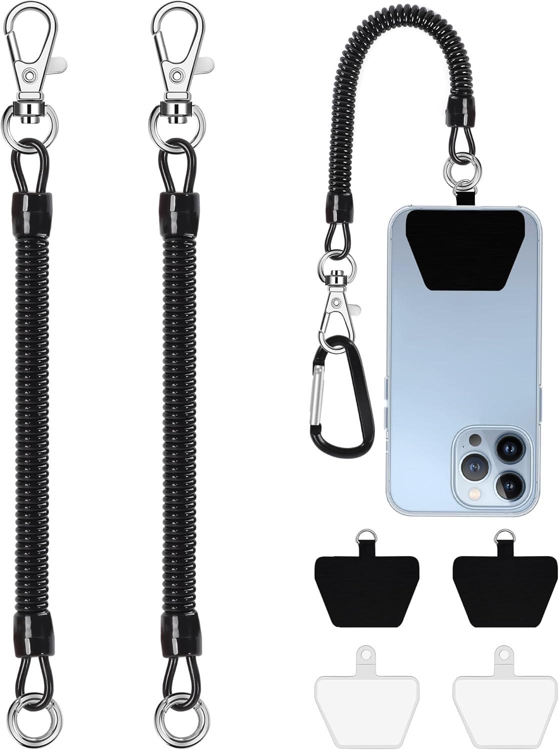 takyu 2PCS Phone Lanyard Tether with 4*Patch and 1*Carabiner for Travel Outdoor Hiking Cycling Climbing Skiing Compatible for iPhone Most Smartphones – White Purple(Black+black)
