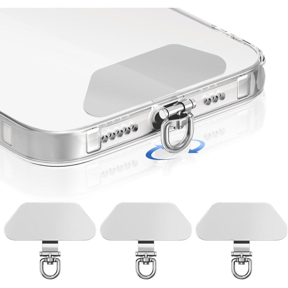 3 Pack takyu Phone Tether Tab, 360° Rotating Metal Phone Lanyard Tab, Cellphone Charm Wrist Strap Hook Holder, Ultra-thin Stainless Steel Patch Compatible for iPhone Android Smartphones