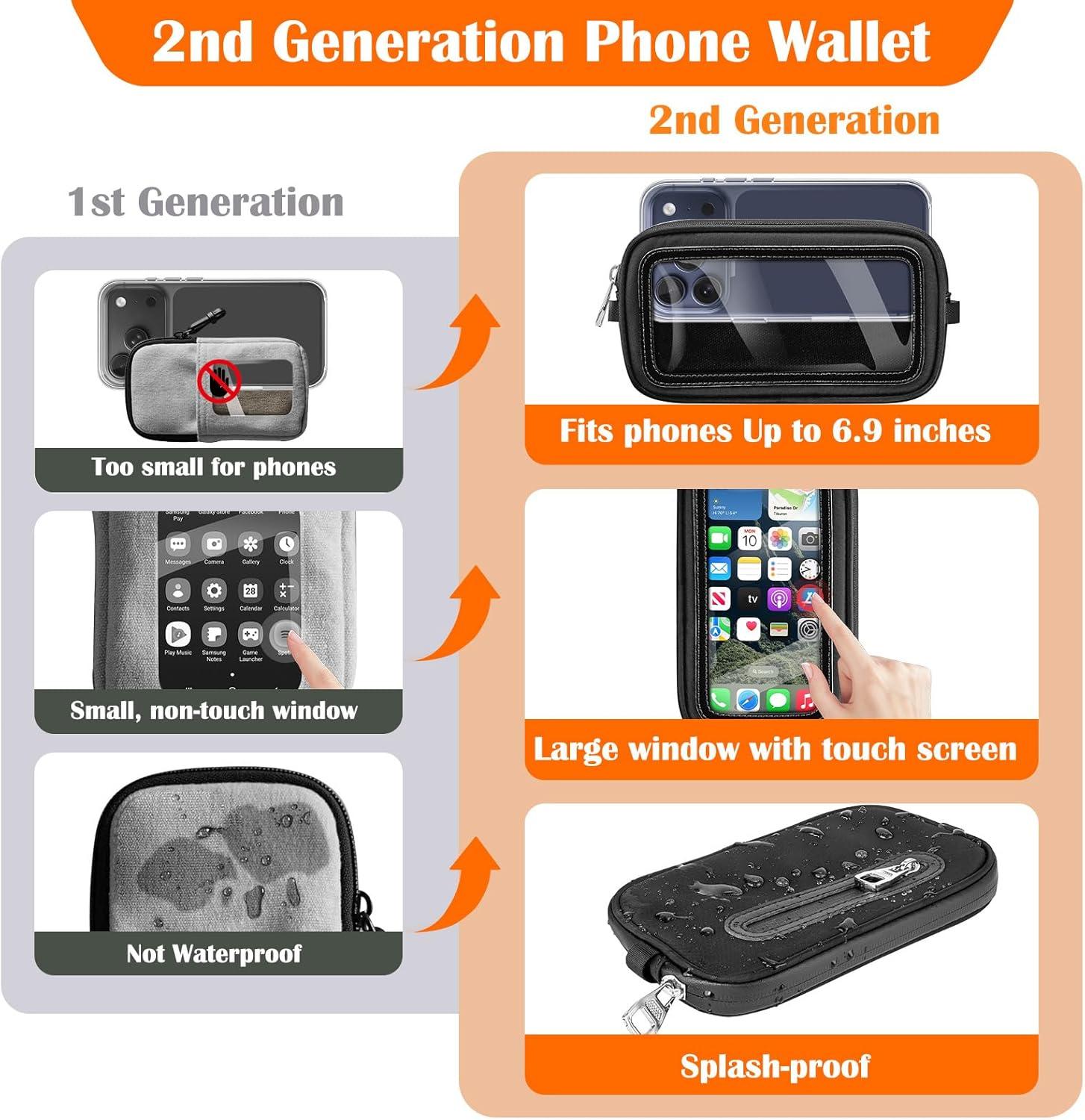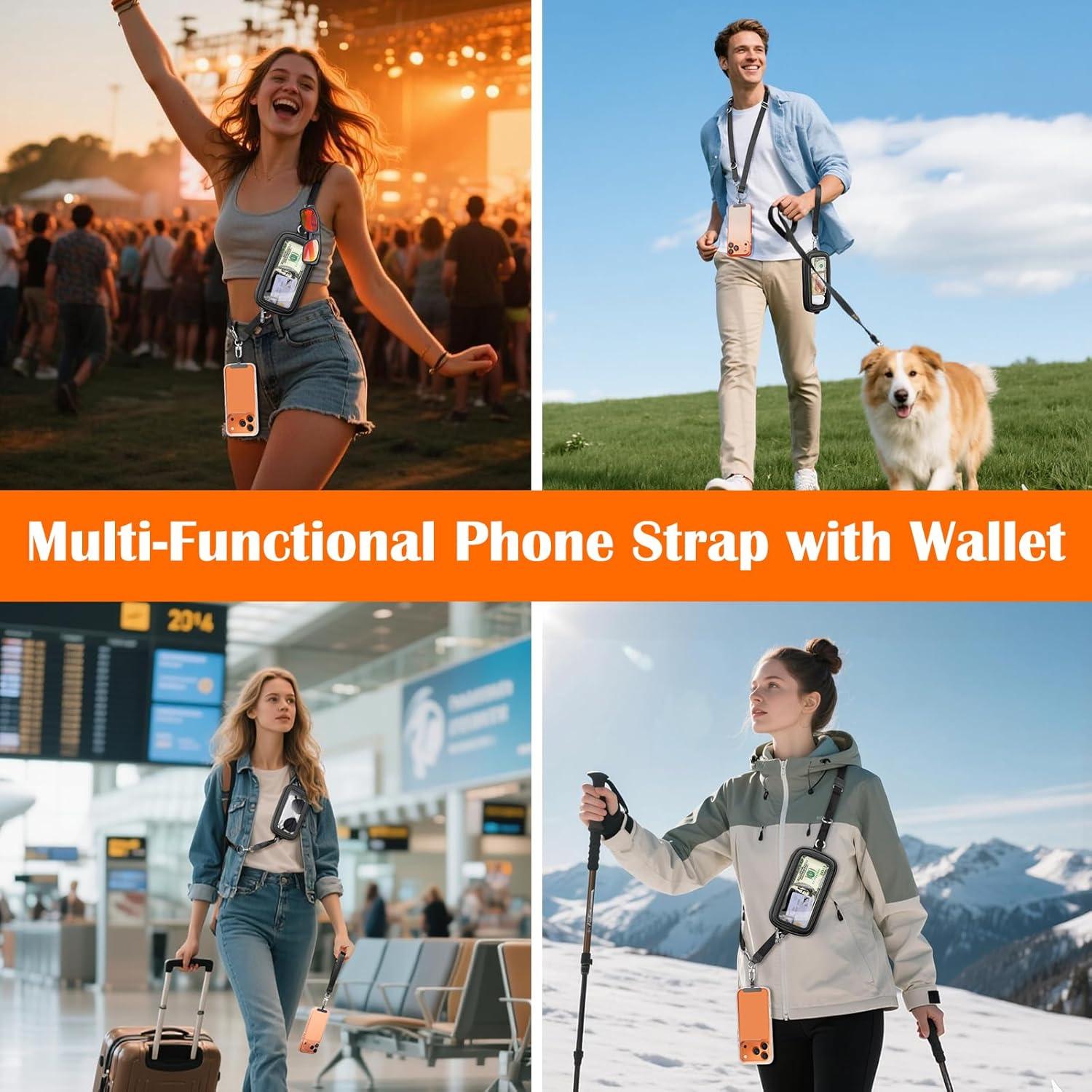 takyu Clip and Go Phone Strap, Phone Lanyard Crossbody with Detachable Wrist Strap Wallet ID Window for Women Daily Use(Carbon Black)
