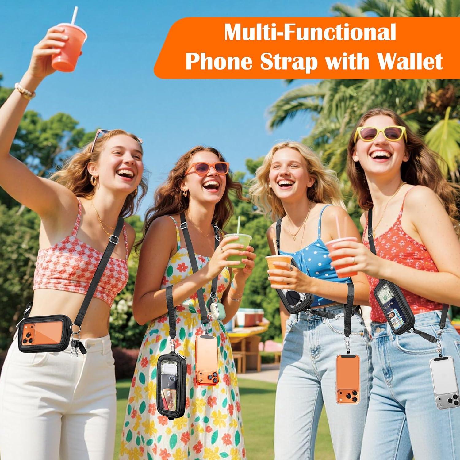 takyu Clip and Go Phone Strap, Phone Lanyard Crossbody with Detachable Wrist Strap Wallet ID Window for Women Daily Use(Ebony)